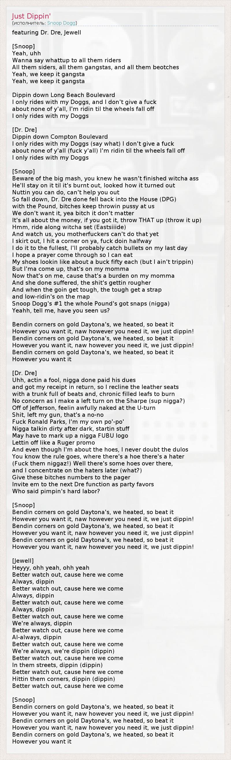 А как ты думаешь, о чем песня "Just Dippin'" ?