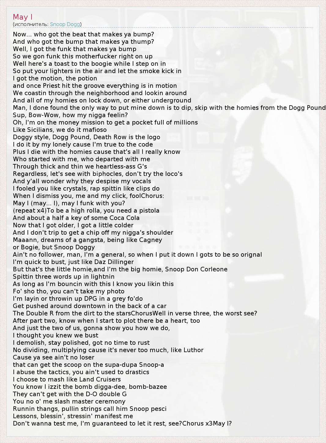 Don't wanna test me, I'm guaranteed to let it rest, see?Chorus x3May I?