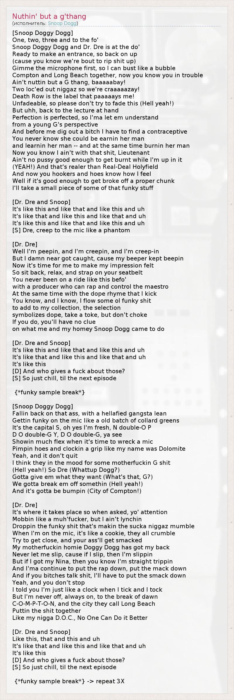 А как ты думаешь, о чем песня "Nuthin' but a g'thang" ?