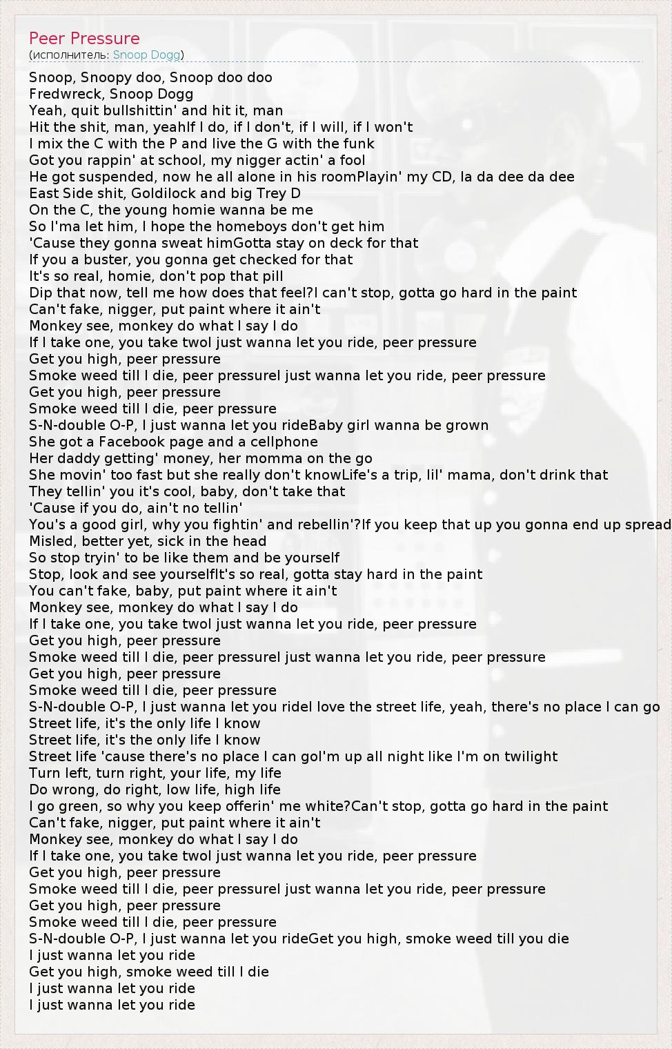 Smoke weed till I die, peer pressureI just wanna let you ride, peer pressure