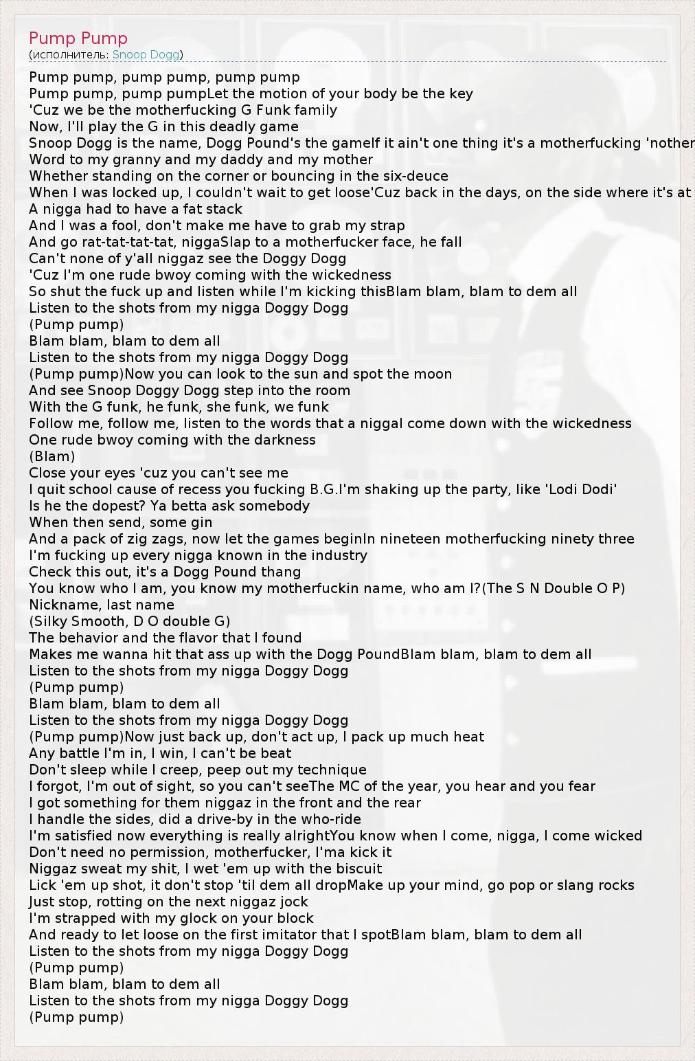 Makes me wanna hit that ass up with the Dogg PoundBlam blam, blam to dem all