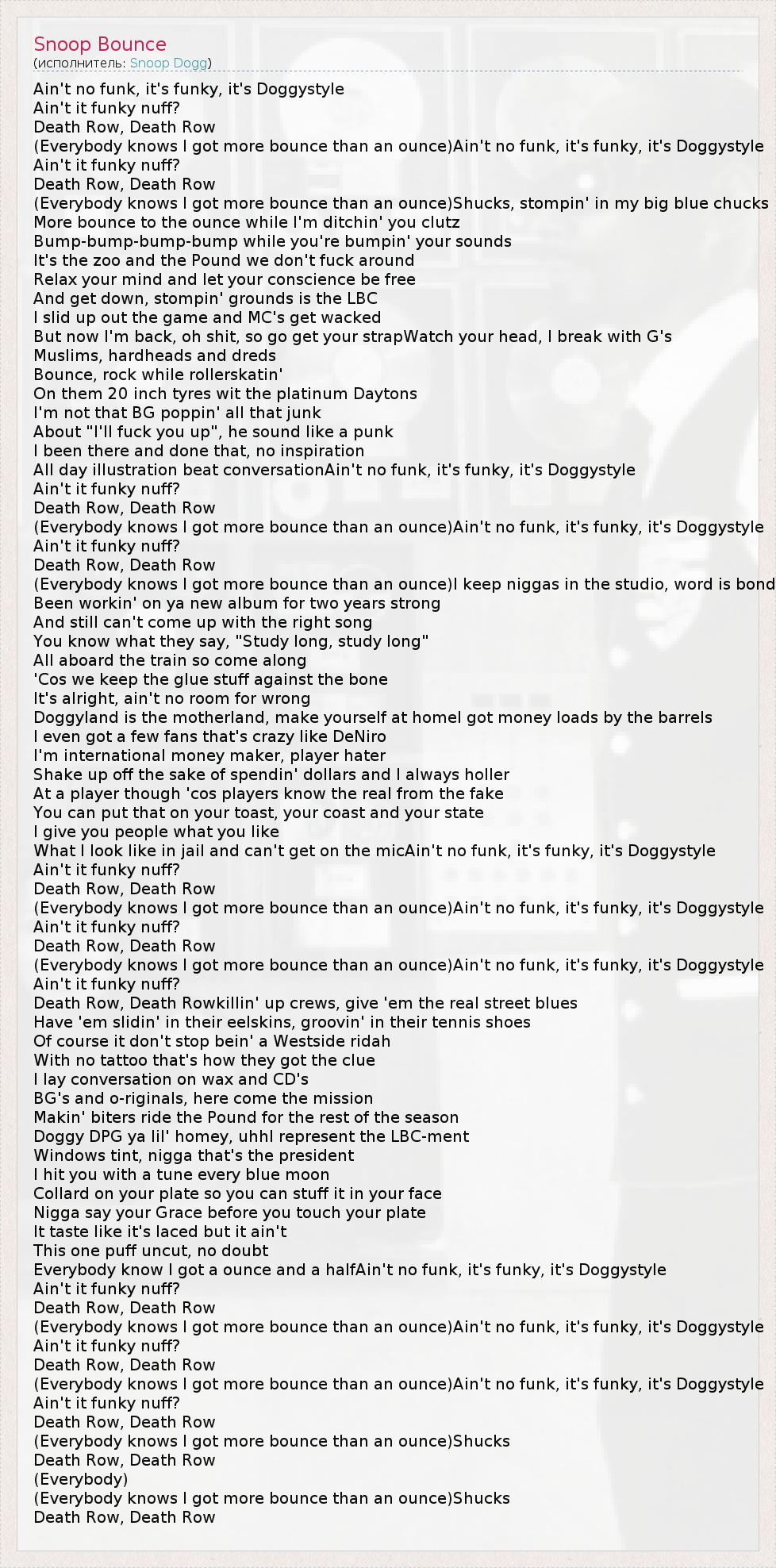 А как ты думаешь, о чем песня "Snoop Bounce" ?