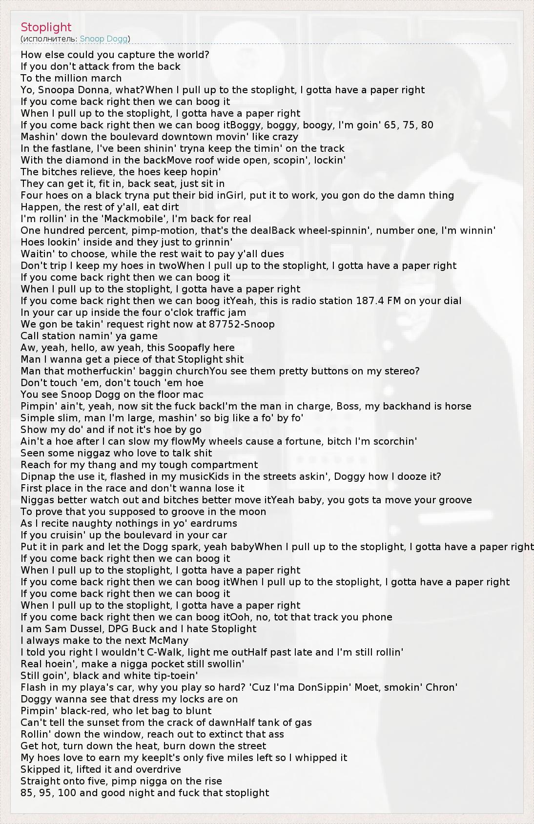 Yo, Snoopa Donna, what?When I pull up to the stoplight, I gotta have a paper right