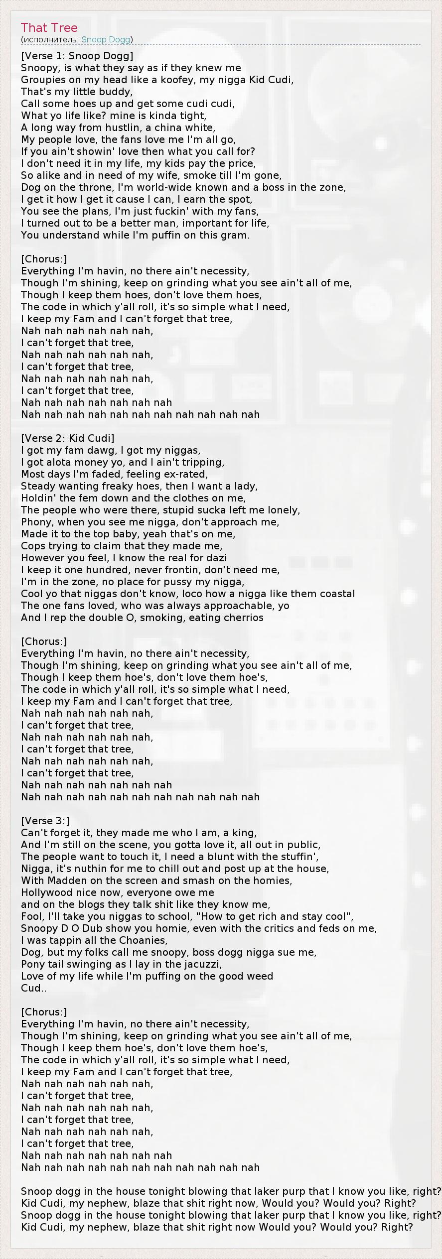 I keep my Fam and I can't forget that tree,