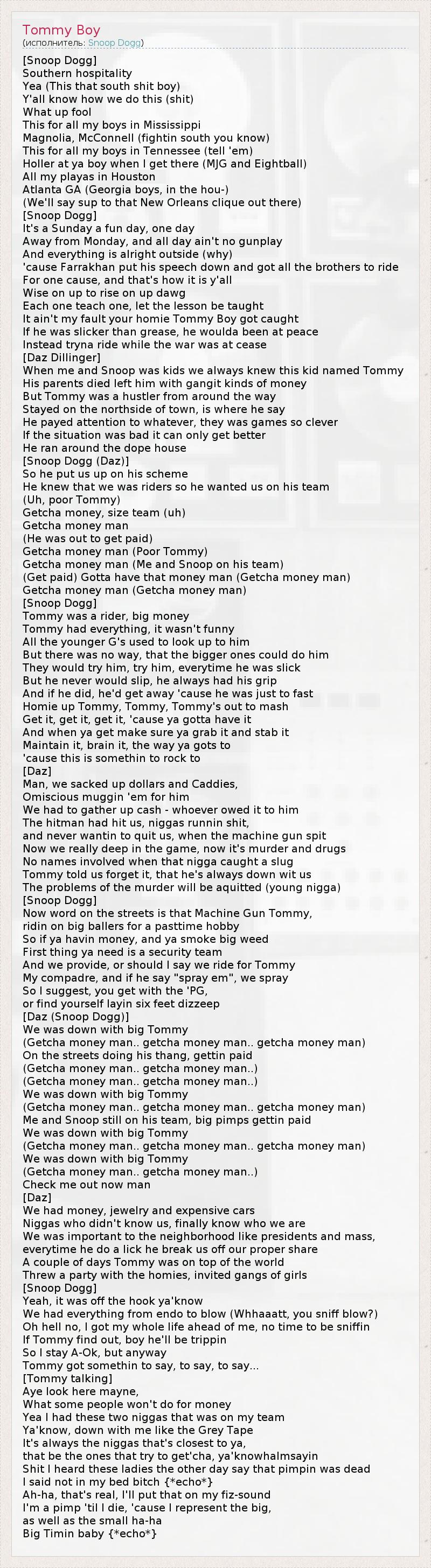 А как ты думаешь, о чем песня "Tommy Boy" ?