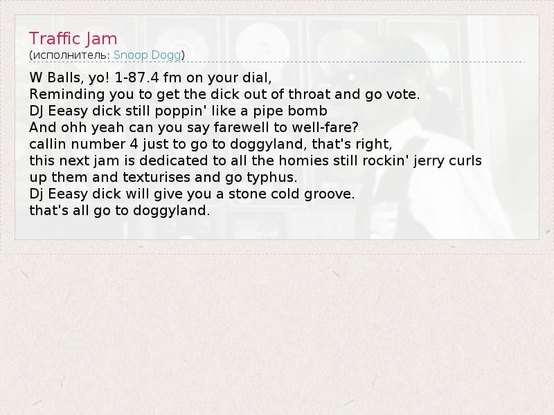 А как ты думаешь, о чем песня "Traffic Jam" ?