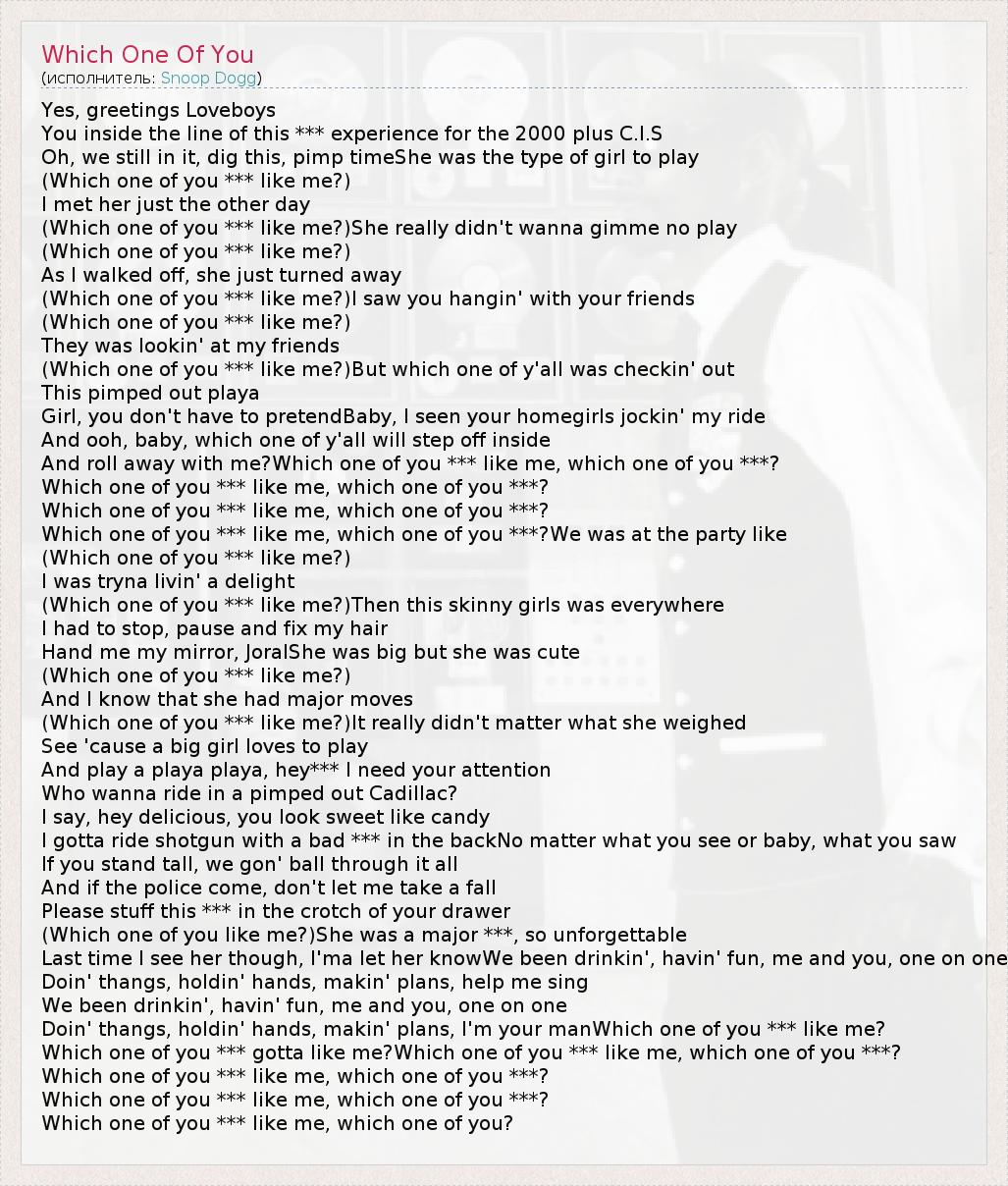 Which one of you *** gotta like me?Which one of you *** like me, which one of you ***?
