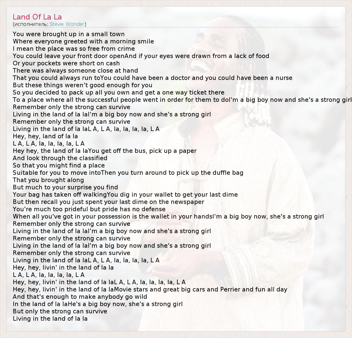 А как ты думаешь, о чем песня "Land Of La La" ?