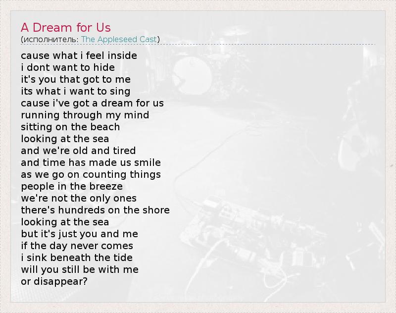А как ты думаешь, о чем песня "A Dream for Us" ?