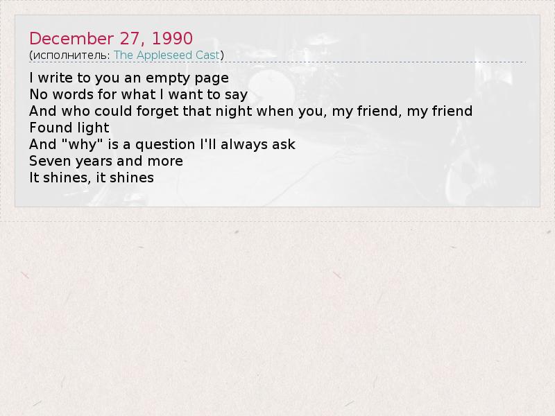 А как ты думаешь, о чем песня "December 27, 1990" ?