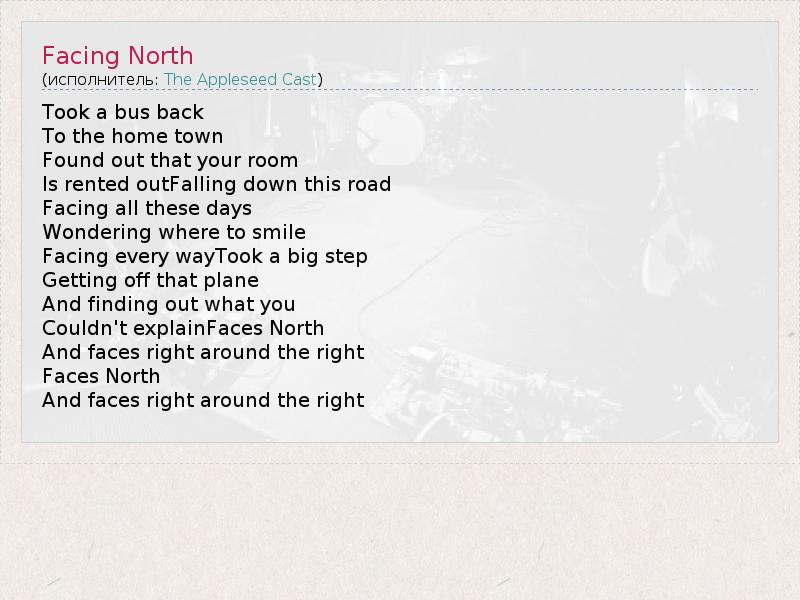 А как ты думаешь, о чем песня "Facing North" ?