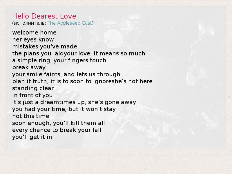 А как ты думаешь, о чем песня "Hello Dearest Love" ?
