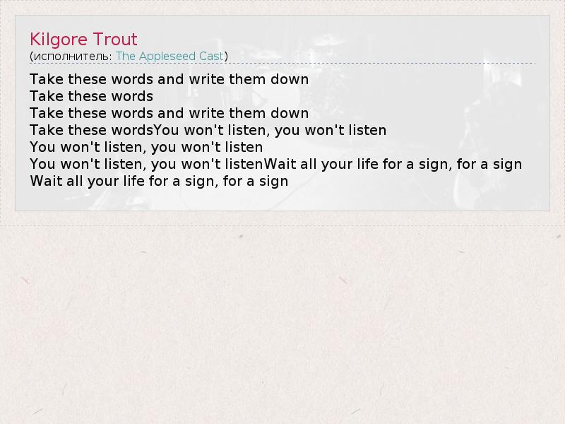 А как ты думаешь, о чем песня "Kilgore Trout" ?