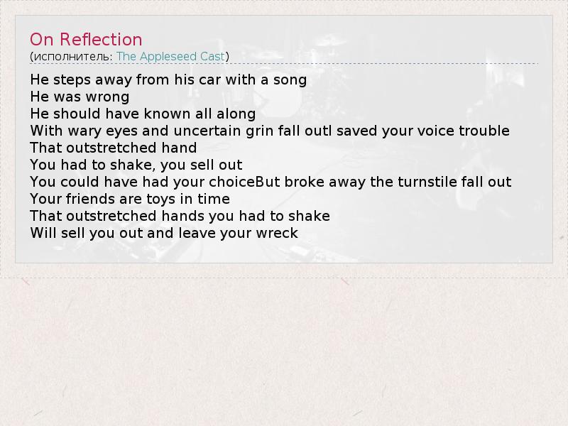 Это интересно:The Appleseed Cast - группа из города Лоуренс, штат Канзас, играющая смесь из indie / emo / post-rock / alternative rock.“Основание и дебют (1997 - 1998)”Инди группа The Appleseed Cast была образована в 1997 году в Южной Калифорнии музыкантами: Christopher Crisci, Jason Wickersheim и Louie Ruiz и изначально называлась December's Tragic Drive (название коллектива - фраза, взятая из песни “Seven"... продолжение