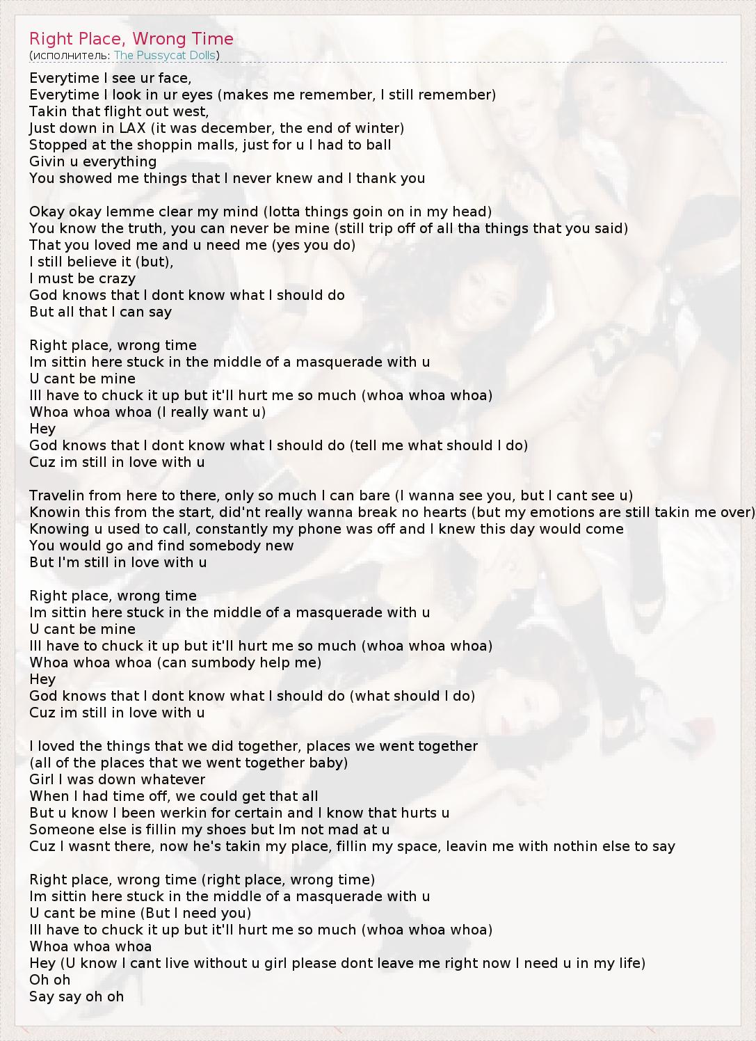 А как ты думаешь, о чем песня "Right Place, Wrong Time" ?