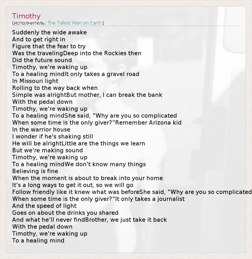А как ты думаешь, о чем песня "Timothy" ?