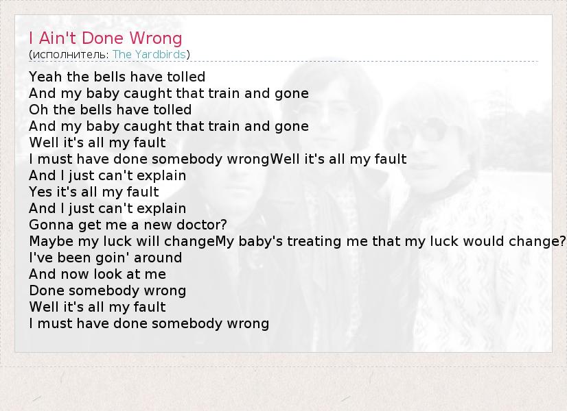 А как ты думаешь, о чем песня "I Ain't Done Wrong" ?