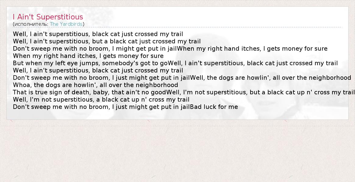 А как ты думаешь, о чем песня "I Ain't Superstitious" ?