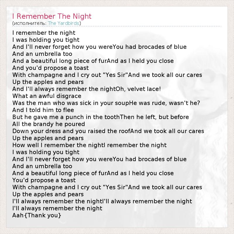 А как ты думаешь, о чем песня "I Remember The Night" ?