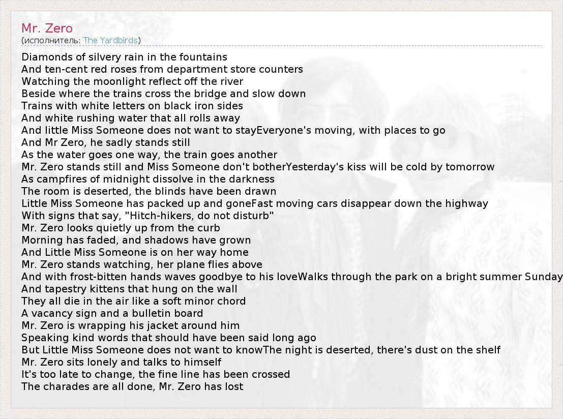 А как ты думаешь, о чем песня "Mr. Zero" ?