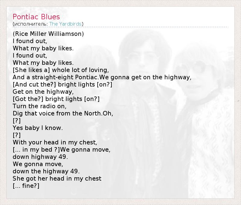 А как ты думаешь, о чем песня "Pontiac Blues" ?