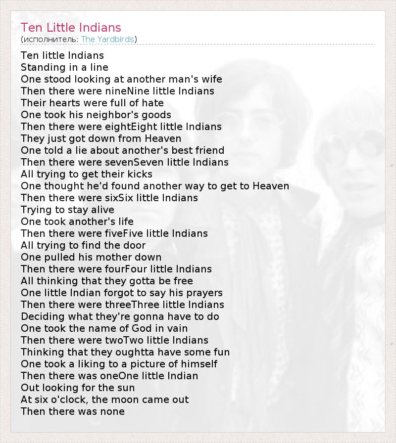 А как ты думаешь, о чем песня "Ten Little Indians" ?
