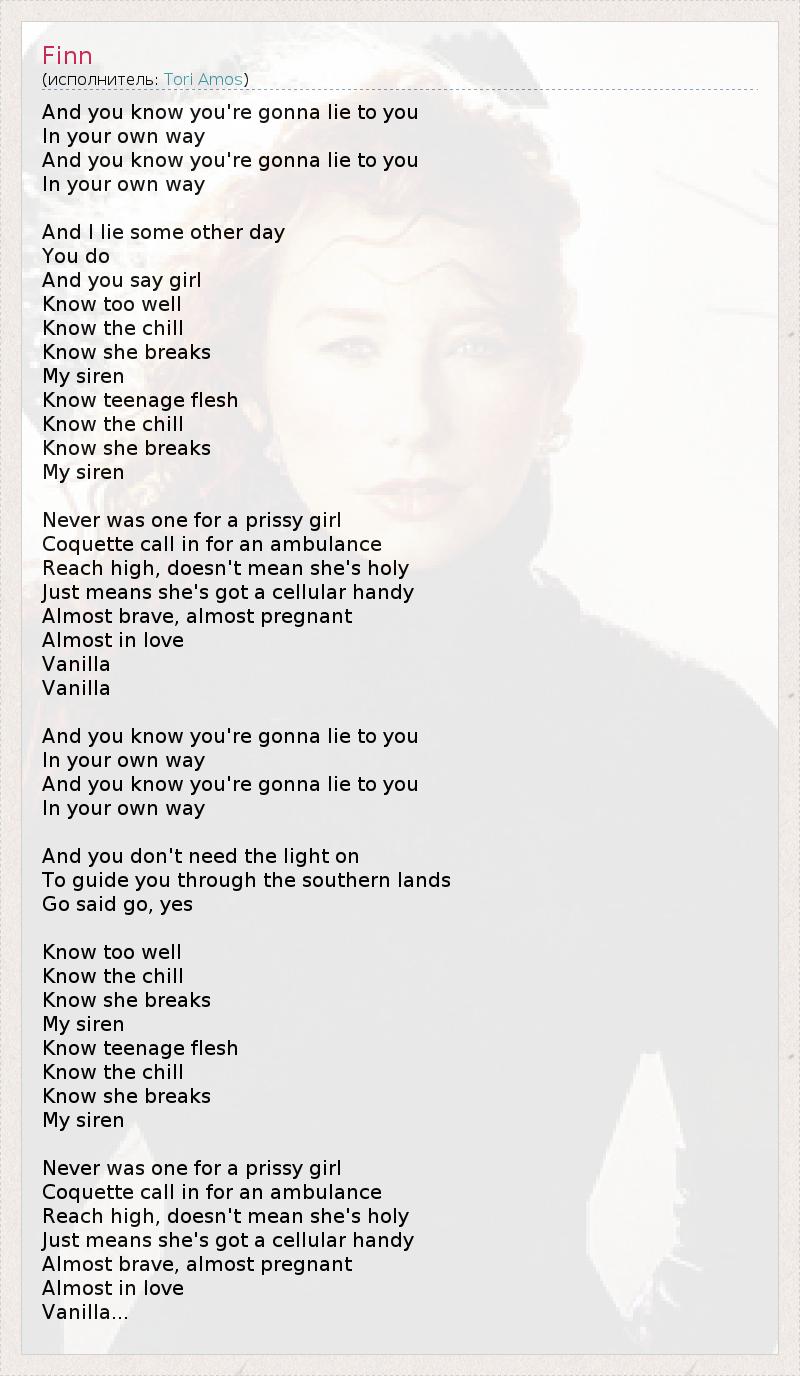Это интересно:Ньютон, Северная Каролина, США (1963 – настоящее время)Хрупкая рыжеволосая сирена Тори Эймос (Tori Amos), не имея в активе ни одного сверхпопулярного хита, не спровоцировав ни одного повода для появления на страницах желтой прессы, смогла обзавестись миллионами отчаянно преданных поклонников, став одной из ключевых фигур женского рок-движения 90-х. Делая акцент на остроумные, вдумчивые,... продолжение