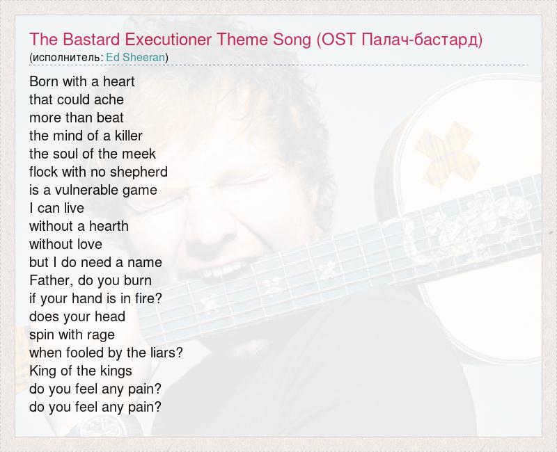 Born with a heart that could ache more than beat the mind of a killer the soul of the meek flock with no shepherd is a vulnerable game I can live without a hearth without love but I do need a name Father, do you burn if your hand is in fire? does your head spin with rage when fooled by the liars? King of the kings do you feel any pain? do you feel any pain?