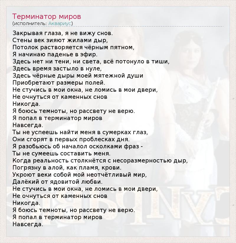 ГлавнаяИсполнителиАквариусТерминатор миров