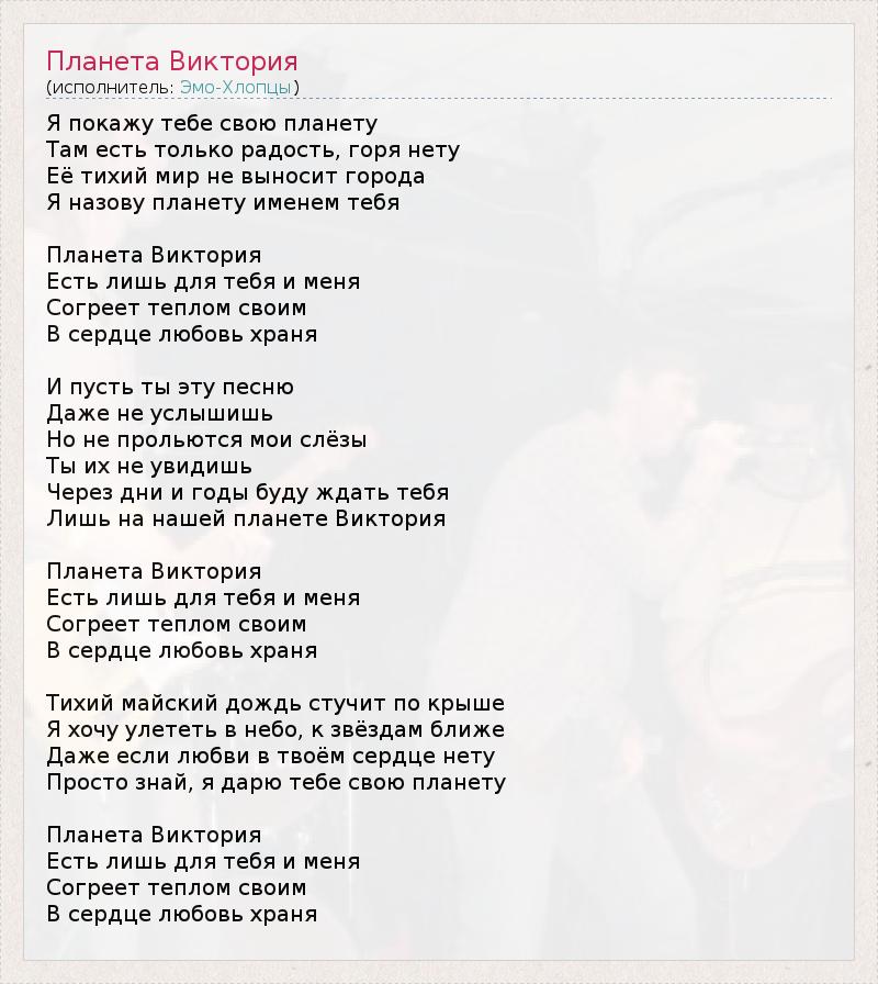 ГлавнаяИсполнителиЭмо-ХлопцыПланета Виктория