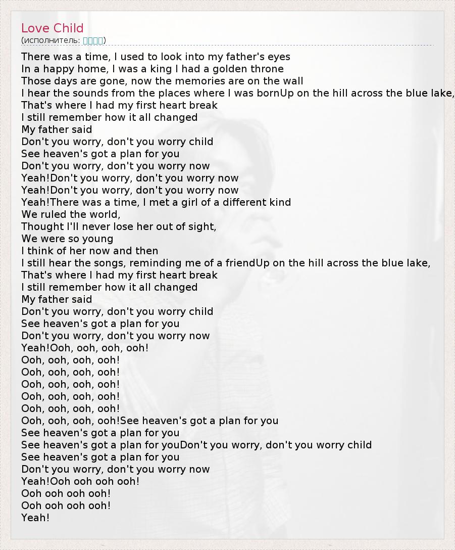 А как ты думаешь, о чем песня "Love Child" ?