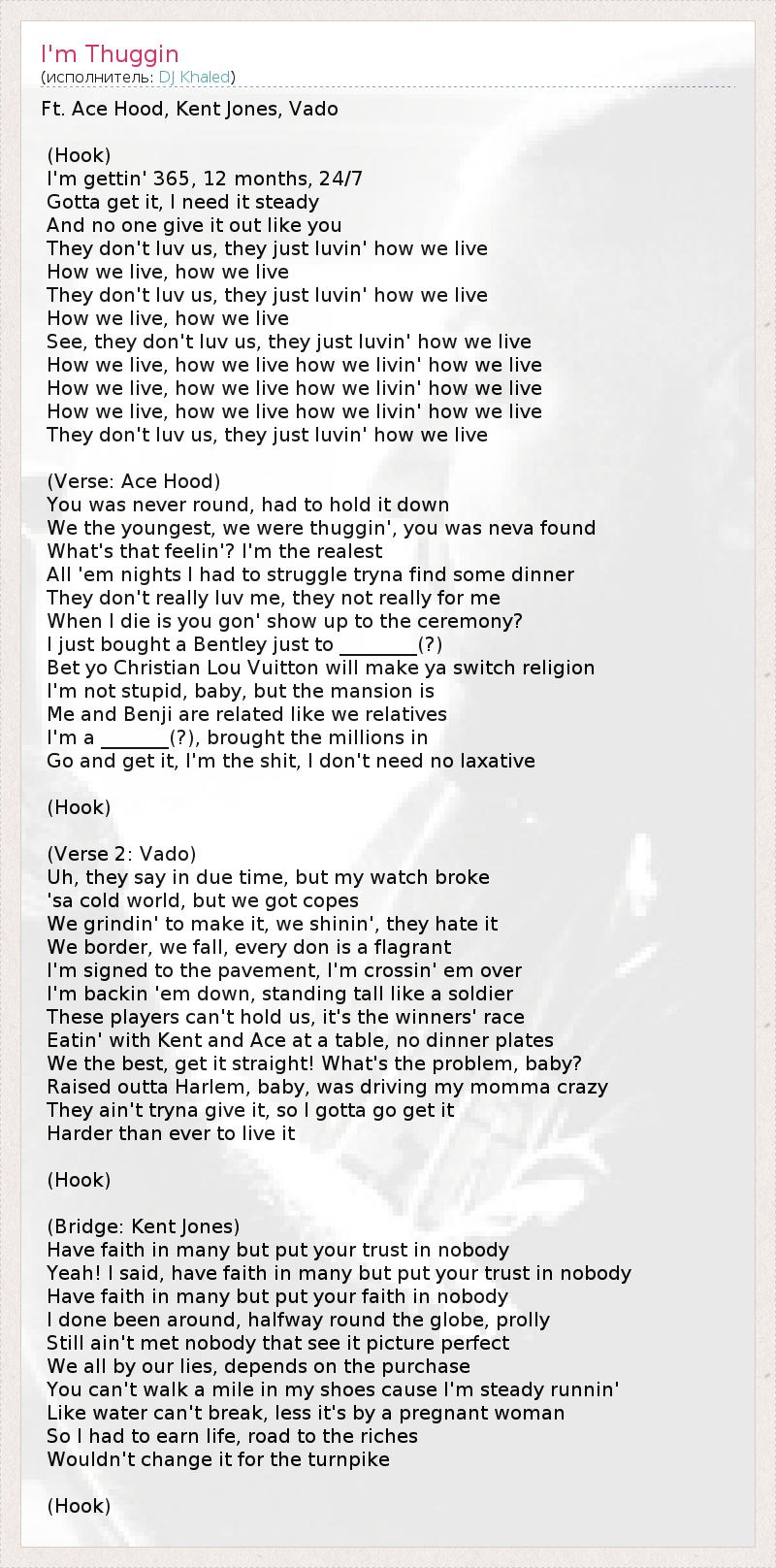 А как ты думаешь, о чем песня "I'm Thuggin" ?