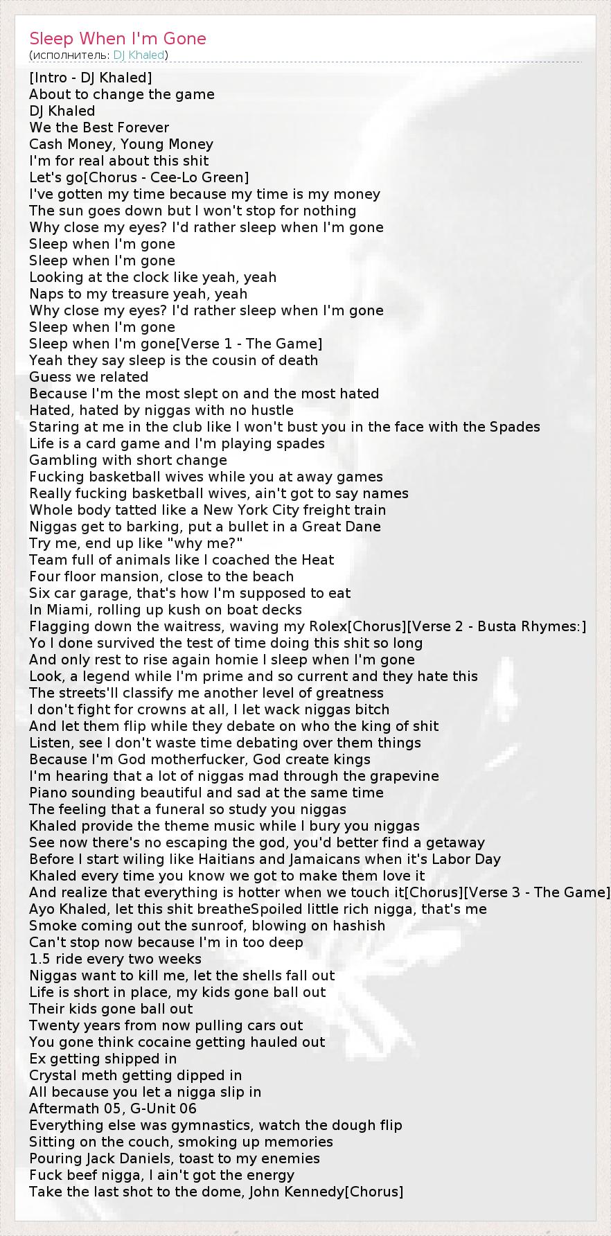 А как ты думаешь, о чем песня "Sleep When I'm Gone" ?