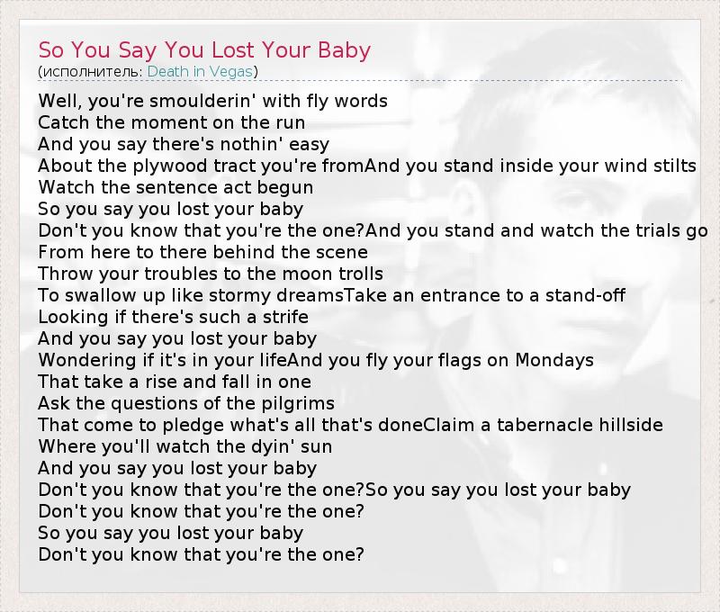 ГлавнаяИсполнителиDeath in VegasSo You Say You Lost Your Baby
