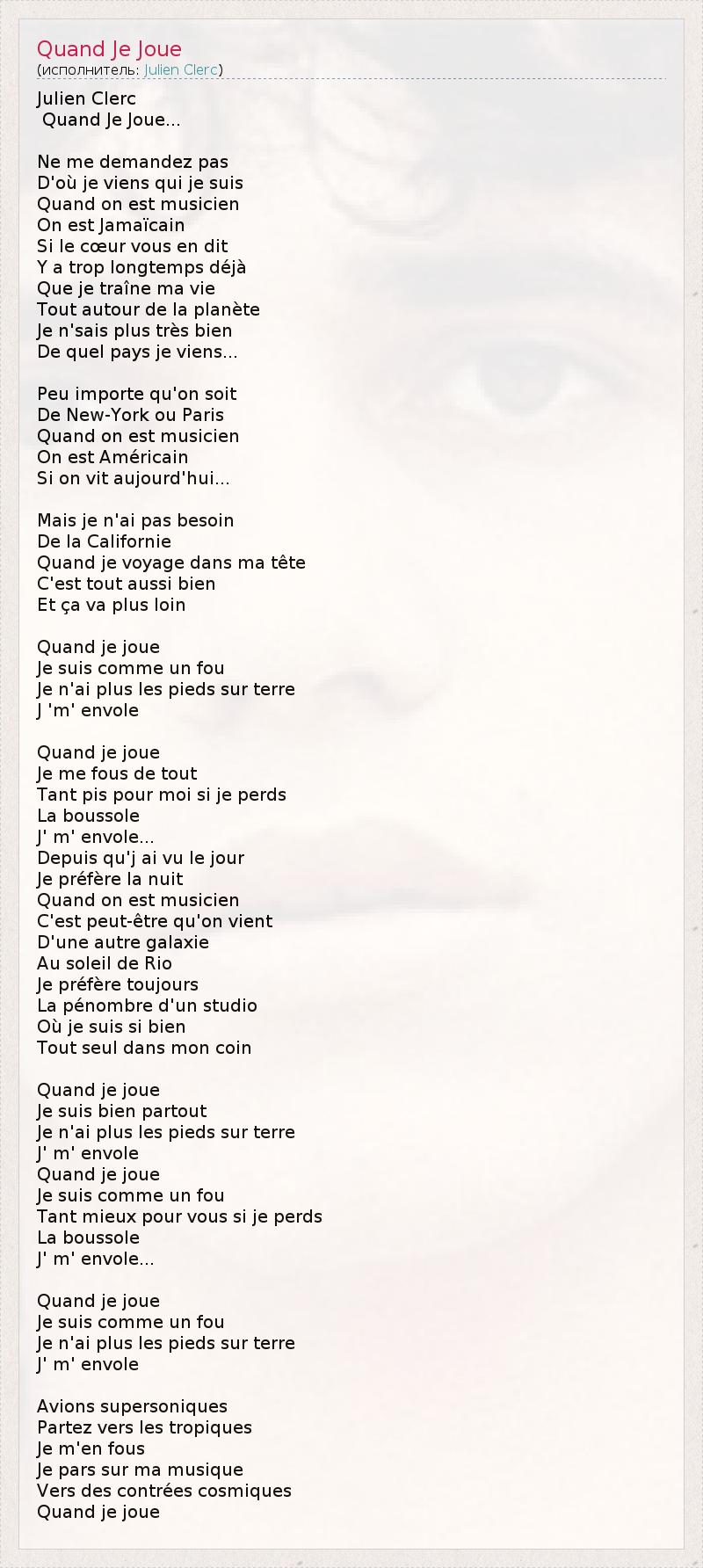 А как ты думаешь, о чем песня "Quand Je Joue" ?