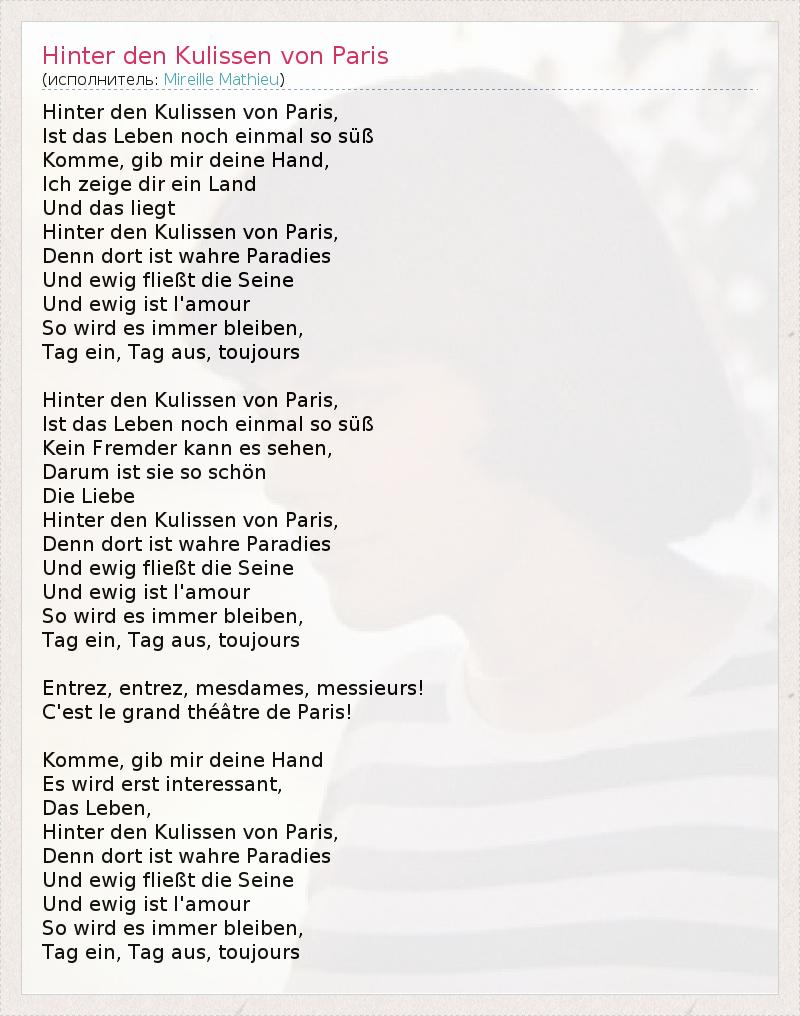 А как ты думаешь, о чем песня "Hinter den Kulissen von Paris" ?