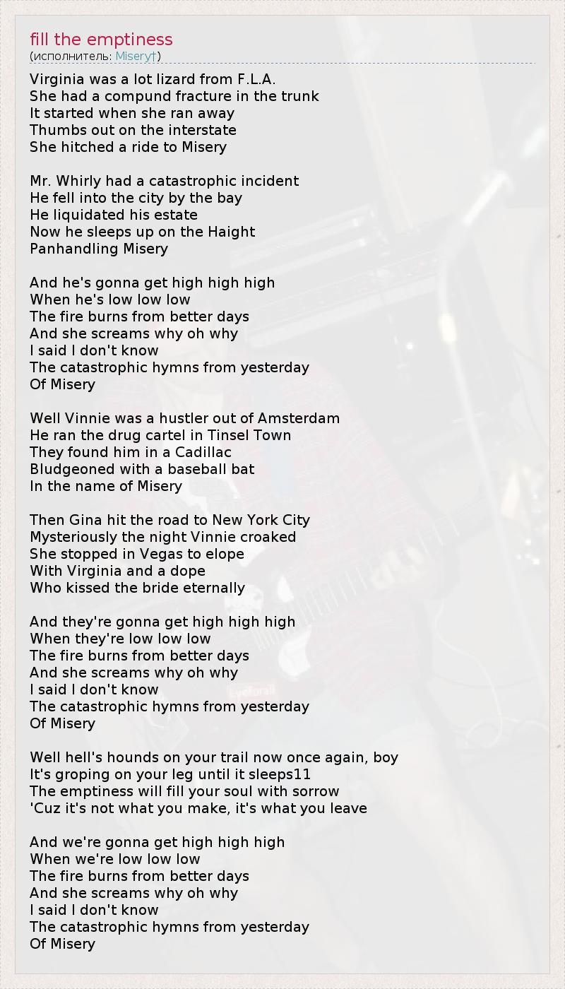 А как ты думаешь, о чем песня "fill the emptiness" ?