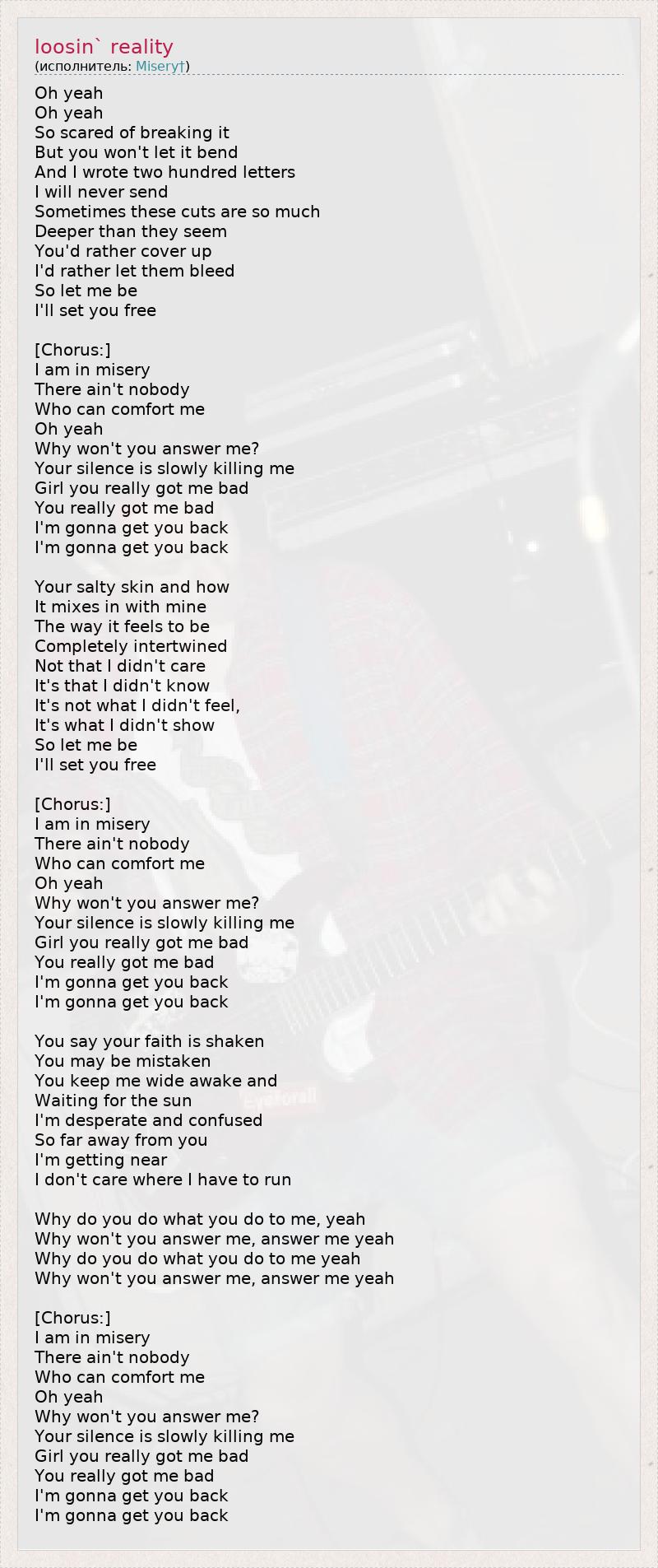 А как ты думаешь, о чем песня "loosin` reality" ?