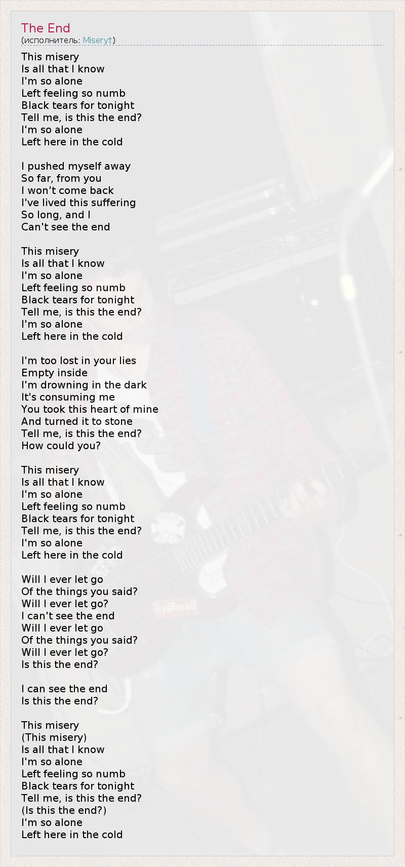Это интересно:Post-metal/post-hardcore/experimentalГруппа Misery. Сама идея группы и материал существовали уже несколько лет, но состав начал формироваться только весной 2011 года. За это время выпустили одну дэмо запись и ЕР альбом. Сейчас идет работа над новым материалом и выпуском сингла. Играли на одной сцене с Dead harts (UK), The... продолжение