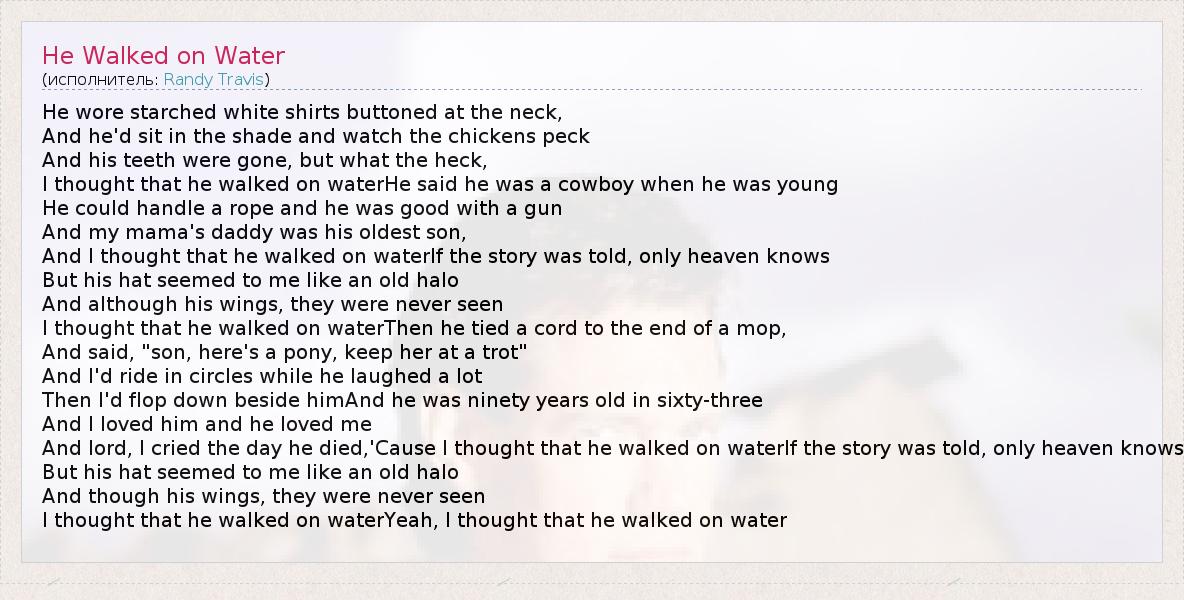 А как ты думаешь, о чем песня "He Walked on Water" ?