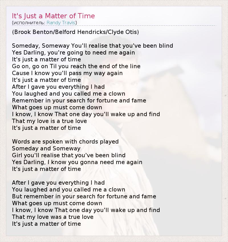 А как ты думаешь, о чем песня "It's Just a Matter of Time" ?