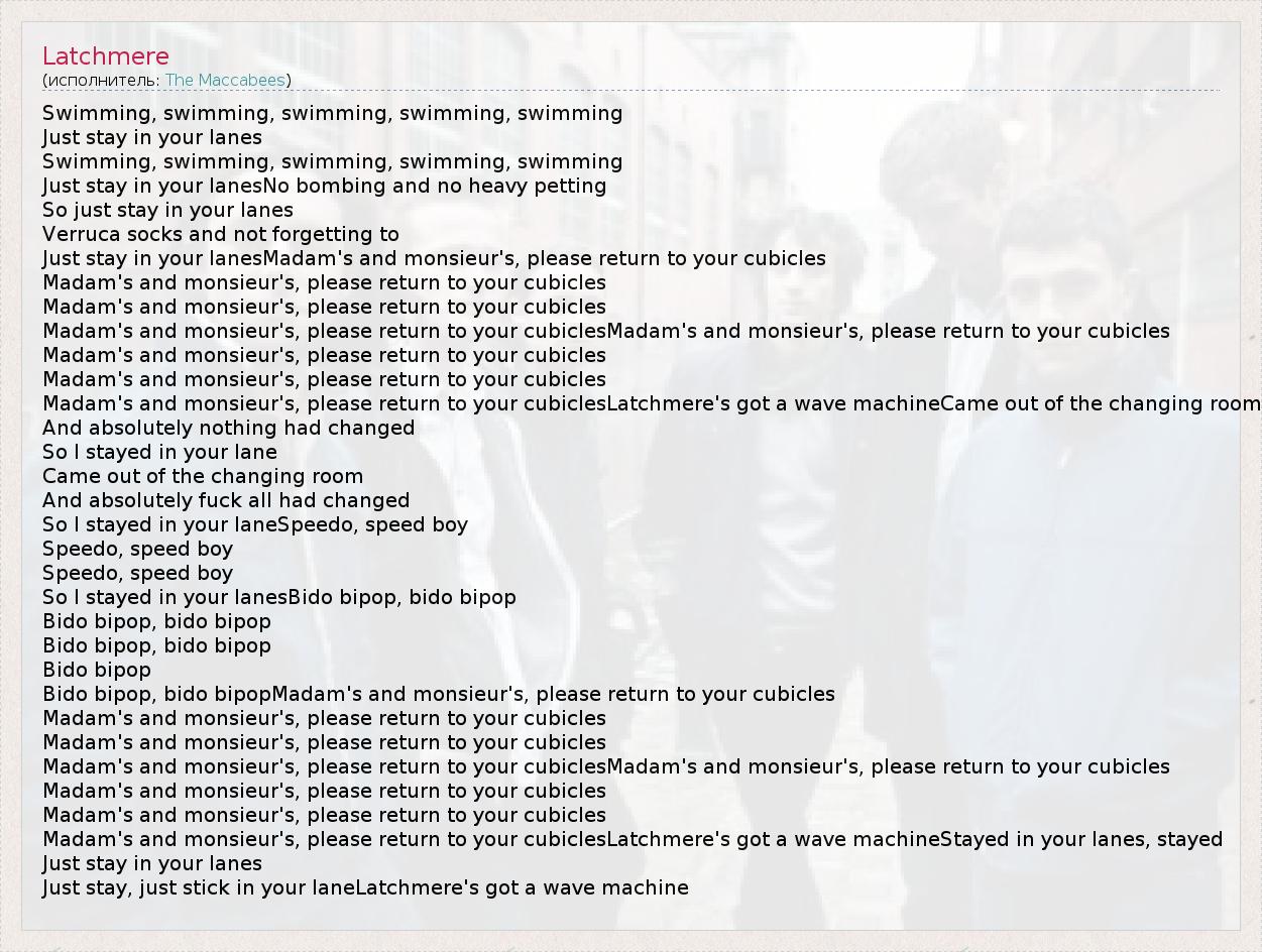 Madam's and monsieur's, please return to your cubiclesLatchmere's got a wave machineStayed in your lanes, stayed
