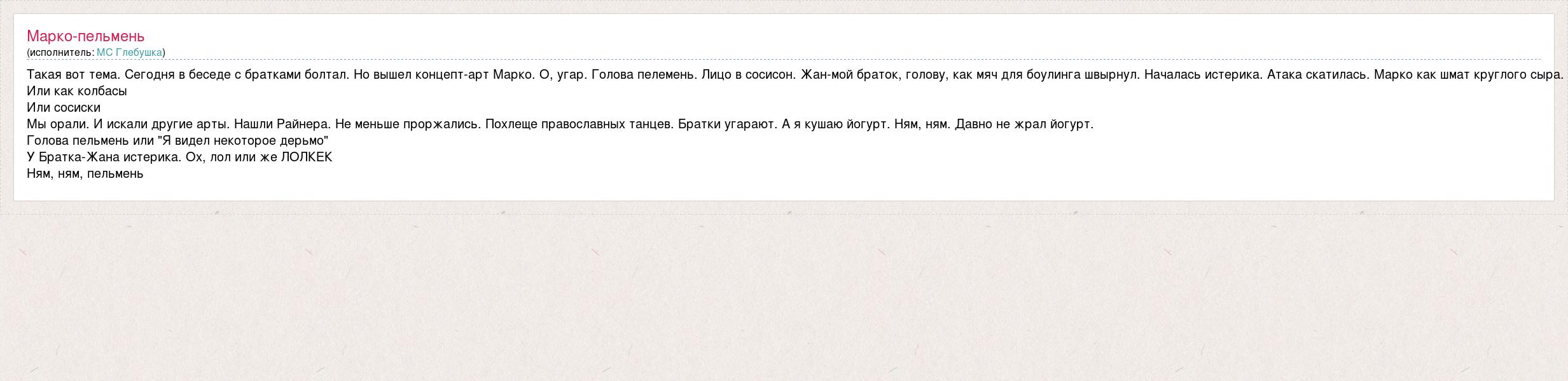 А как ты думаешь, о чем песня "Такая вот тема. Сегодня в беседе с братками болтал. Но вышел концепт-арт Марко" ?