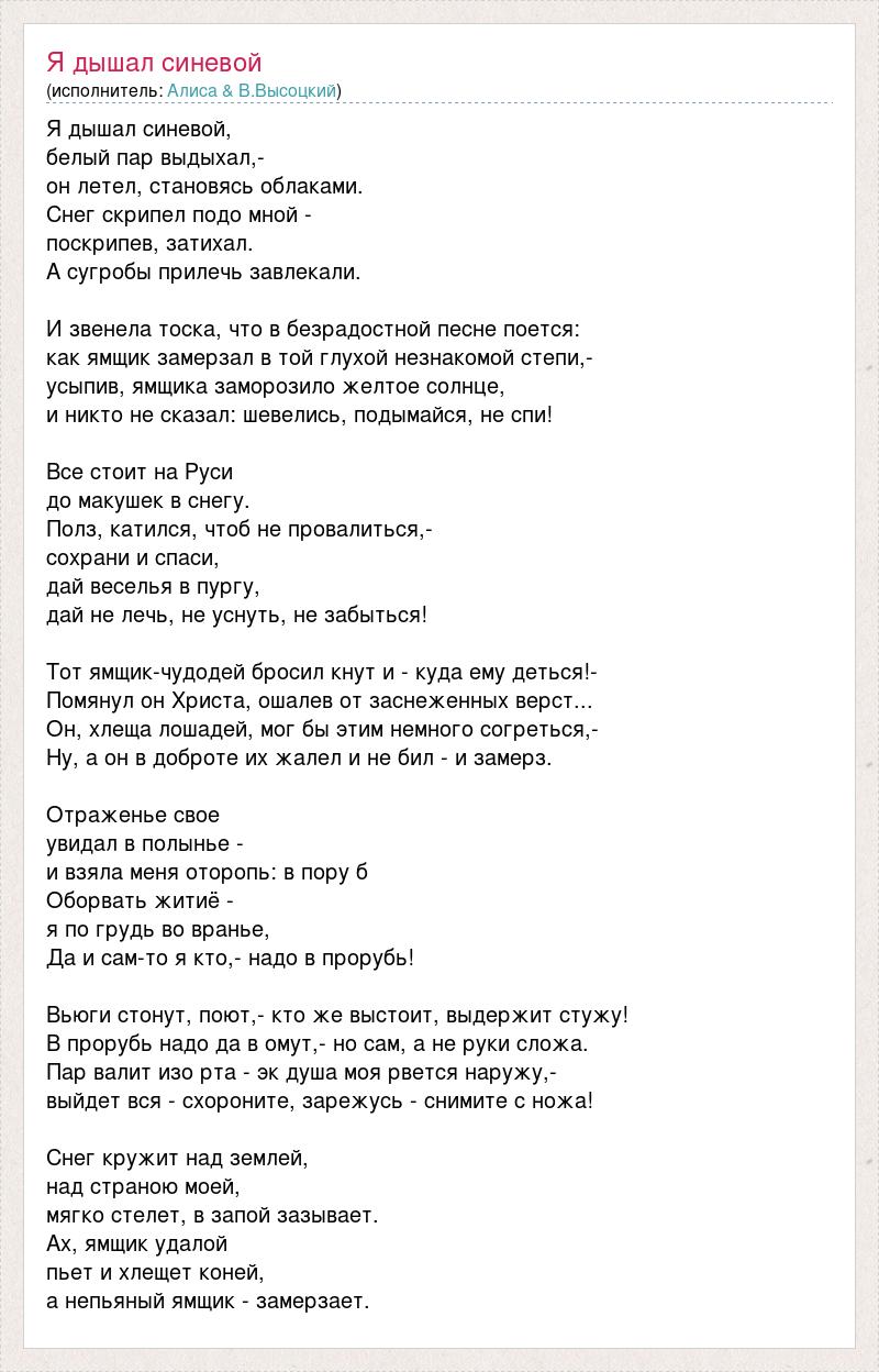 А как ты думаешь, о чем песня "Я дышал синевой" ?