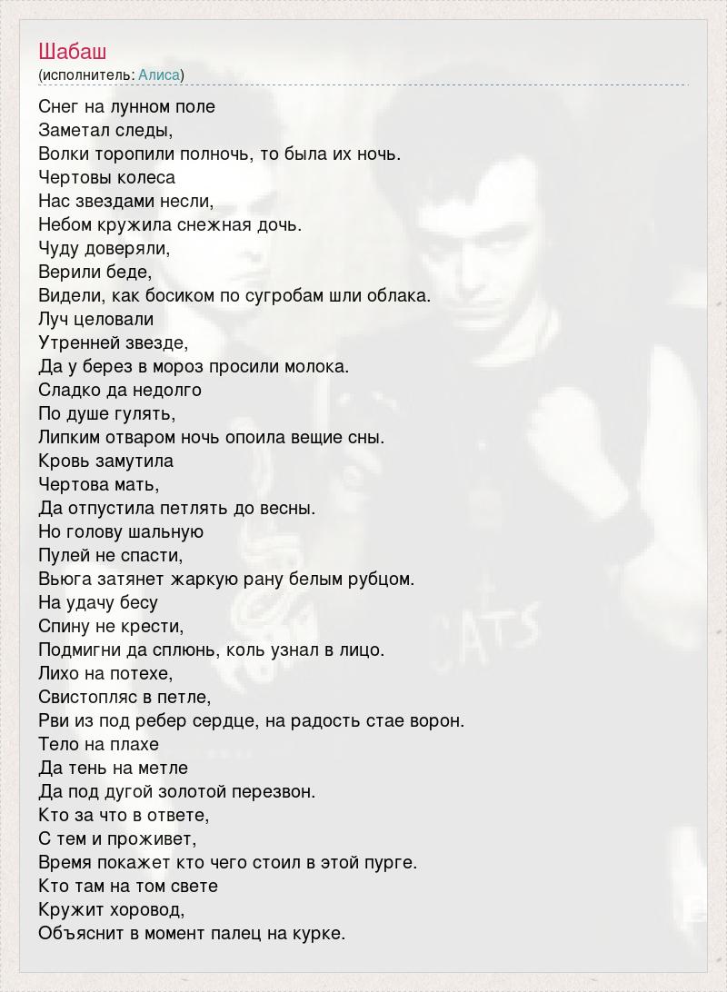 Снег на лунном поле Заметал следы, Волки торопили полночь, то была их ночь. Чертовы колеса Нас звездами несли, Небом кружила снежная дочь. Чуду доверяли, Верили беде, Видели, как босиком по сугробам шли облака. Луч целовали Утренней звезде, Да у берез в мороз просили молока. Сладко да недолго По душе гулять, Липким отваром ночь опоила вещие сны. Кровь замутила Чертова мать, Да отпустила петлять до весны. Но голову шальную Пулей не спасти, Вьюга затянет жаркую рану белым рубцом. На удачу бесу Спину не крести, Подмигни да сплюнь, коль узнал в лицо. Лихо на потехе, Свистопляс в петле, Рви из под ребер сердце, на радость стае ворон. Тело на плахе Да тень на метле Да под дугой золотой перезвон. Кто за что в ответе, С тем и проживет, Время покажет кто чего стоил в этой пурге. Кто там на том свете Кружит хоровод, Объяснит в момент палец на курке.