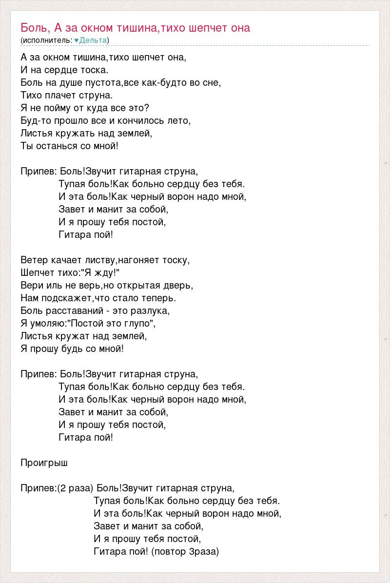 Припев:(2 раза) Боль!Звучит гитарная струна,