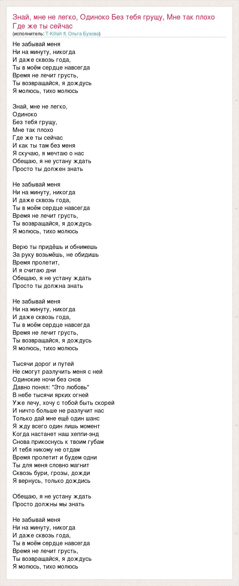 Знай, мне не легко, Одиноко Без тебя грущу, Мне так плохо Где же ты сейчас